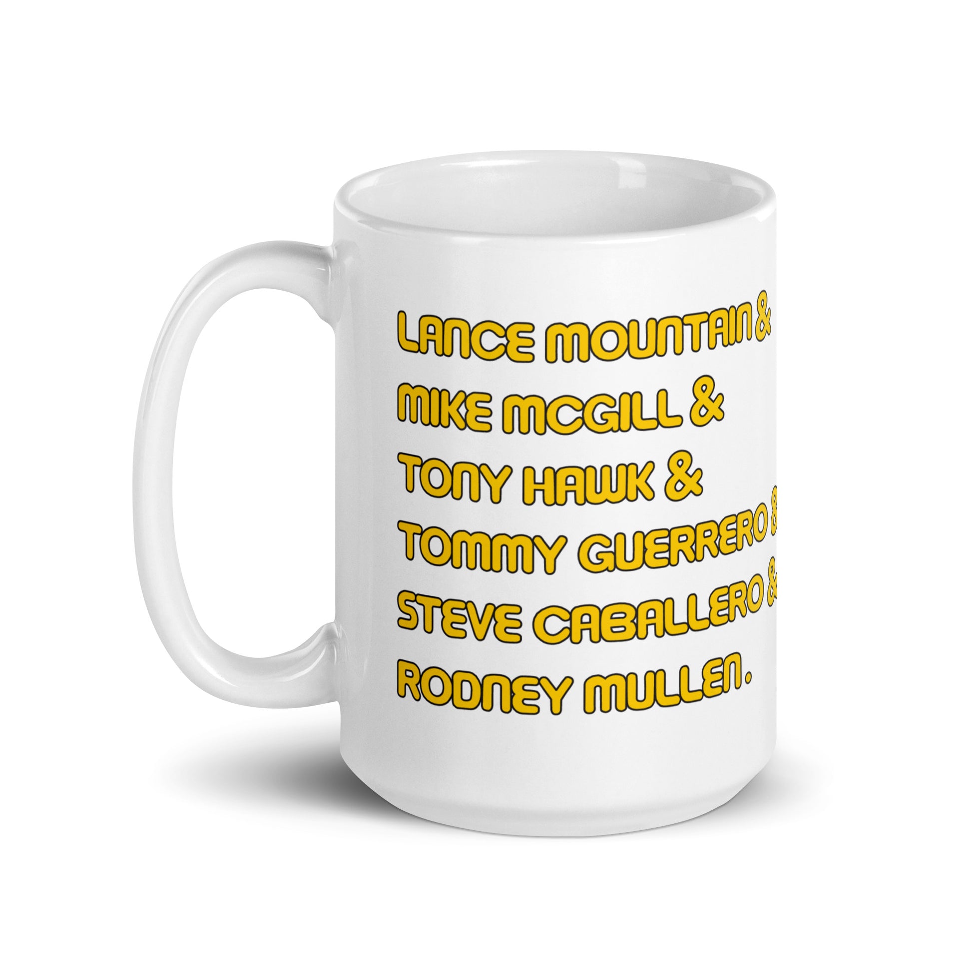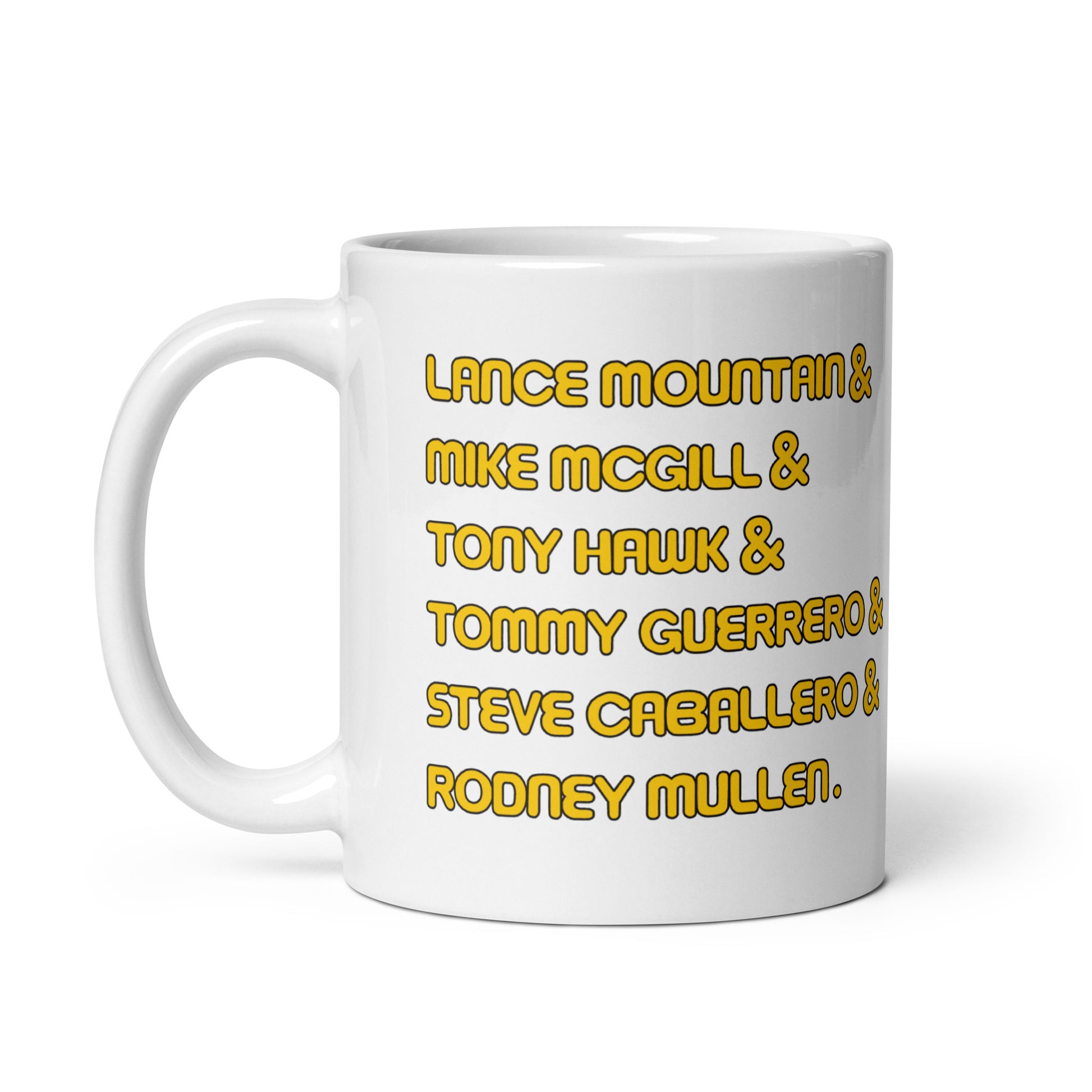 All the classic members of the Bones Brigade. This mug is a homage to the best era in skateboarding.