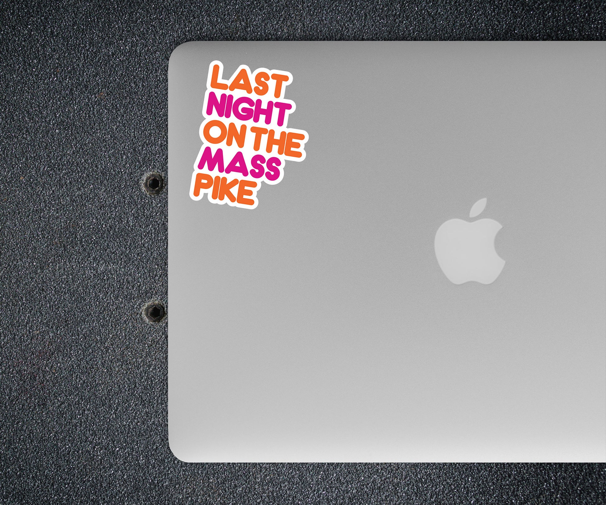 Last Night On The Mass Pike Sticker - This sticker is a throwback to one of the best Get Up kids songs ever. We also made this the Dunkin' Donuts font and color.