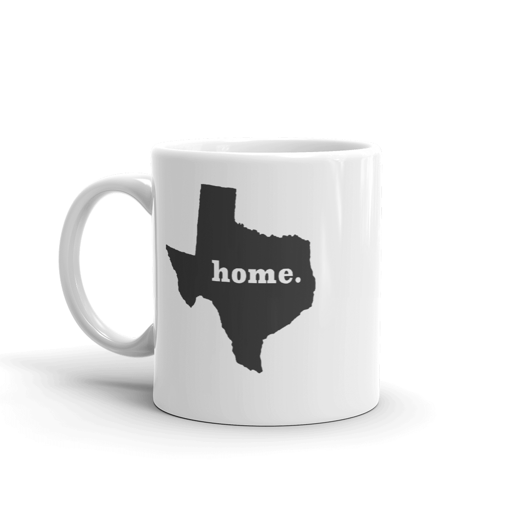 Texas state home logo icon coffee mug. Texas state shape on one site and the "The stars at night